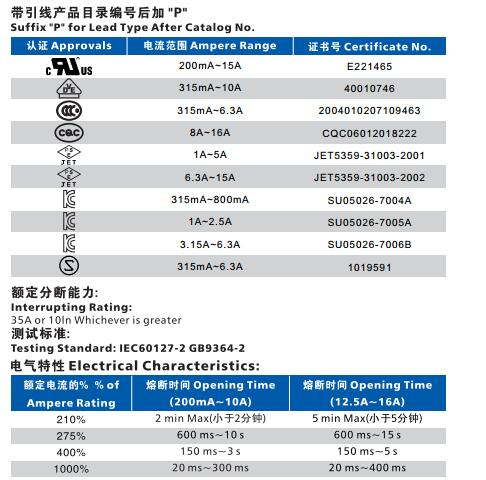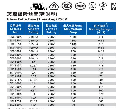 產(chǎn)品名稱: 5K Φ5.2×20玻璃保險(xiǎn)絲管(延時(shí)型)多國(guó)認(rèn)證