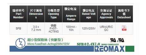 產(chǎn)品名稱: 電阻式保險(xiǎn)絲SFB 3.0*7.2mm 環(huán)氧涂層(快斷型)
