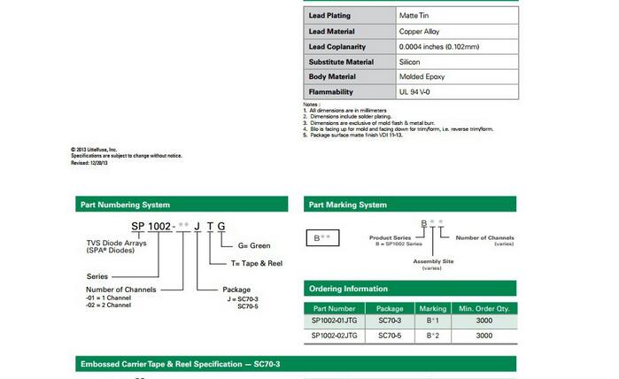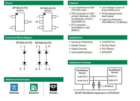 產(chǎn)品名稱: SP1002 Series 5pF 8kV bidirectional TVS Array