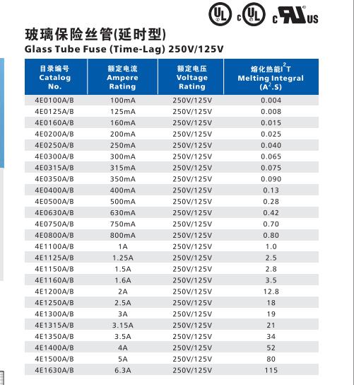 產(chǎn)品名稱: 4E Φ4.6×15 玻璃慢斷保險絲