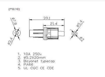產(chǎn)品名稱: H3-5(引線式) 保險絲座(引線式)|汽車保險絲座H(引線式)|保險絲盒(引線式)