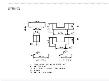 產(chǎn)品名稱: H3-77(PCB板安裝) 保險(xiǎn)絲座(引線式)|汽車保險(xiǎn)絲座H(引線式)|保險(xiǎn)絲盒(引線式)