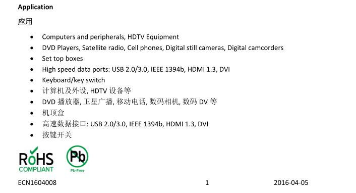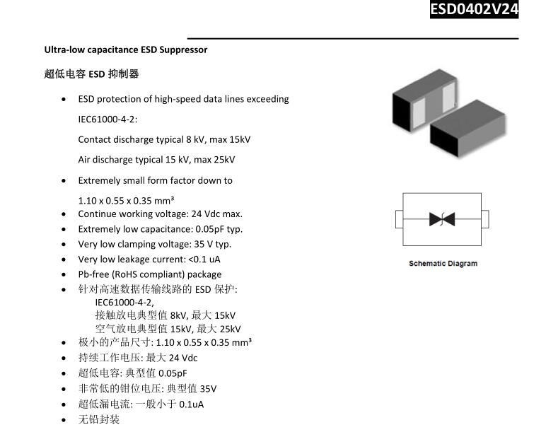 簡述: Base on Polymer Voltage Variable Material, for ESD protection with ultra-low capacitance. 0402(1005) chip size.