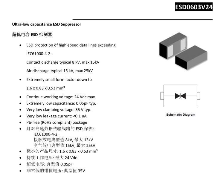 簡(jiǎn)述: Base on Polymer Voltage Variable Material, for ESD protection with ultra-low capacitance. 0603 chip size.