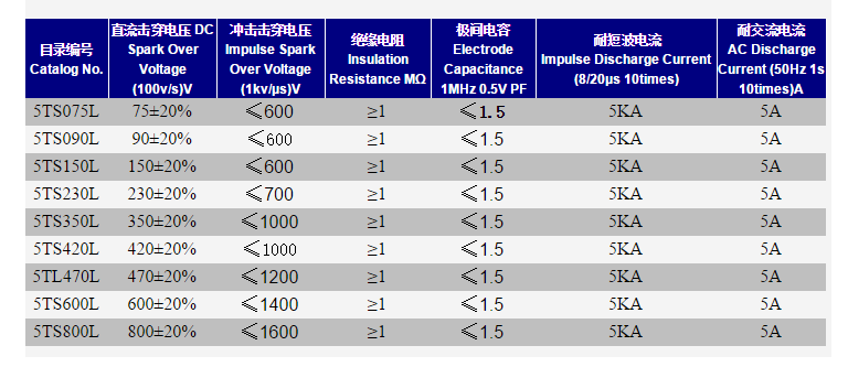 產(chǎn)品名稱: 5TS Φ5.0x7.6 陶瓷氣體放電管