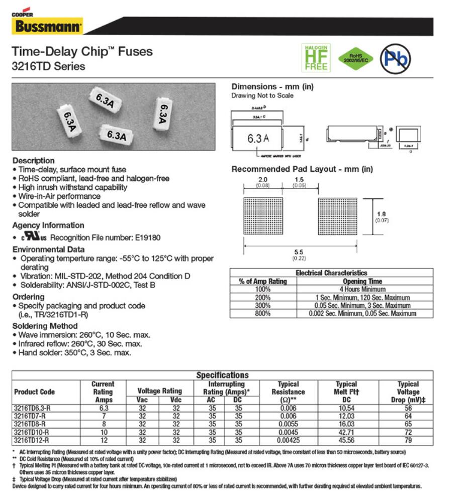 產品名稱: 庫柏 巴斯曼 3216TD 12A一次性保險絲 陶瓷貼片