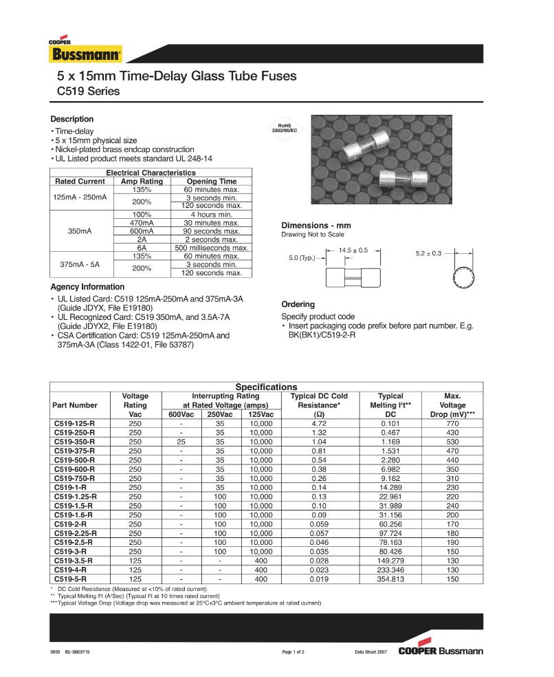 產(chǎn)品名稱: 巴斯曼保險(xiǎn)絲 C519 5*15MM 慢斷保險(xiǎn)絲
