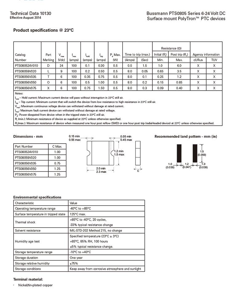 產(chǎn)品名稱: PTS080524V010 自恢復(fù)貼片保絲