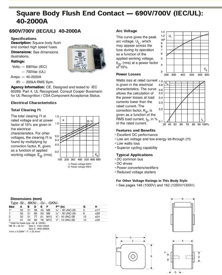 產(chǎn)品名稱: BUSSMANN 170M6462熔斷器