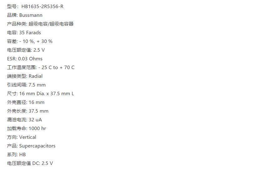 產(chǎn)品名稱: bussmann HB1635-2R5356-R超級(jí)電容