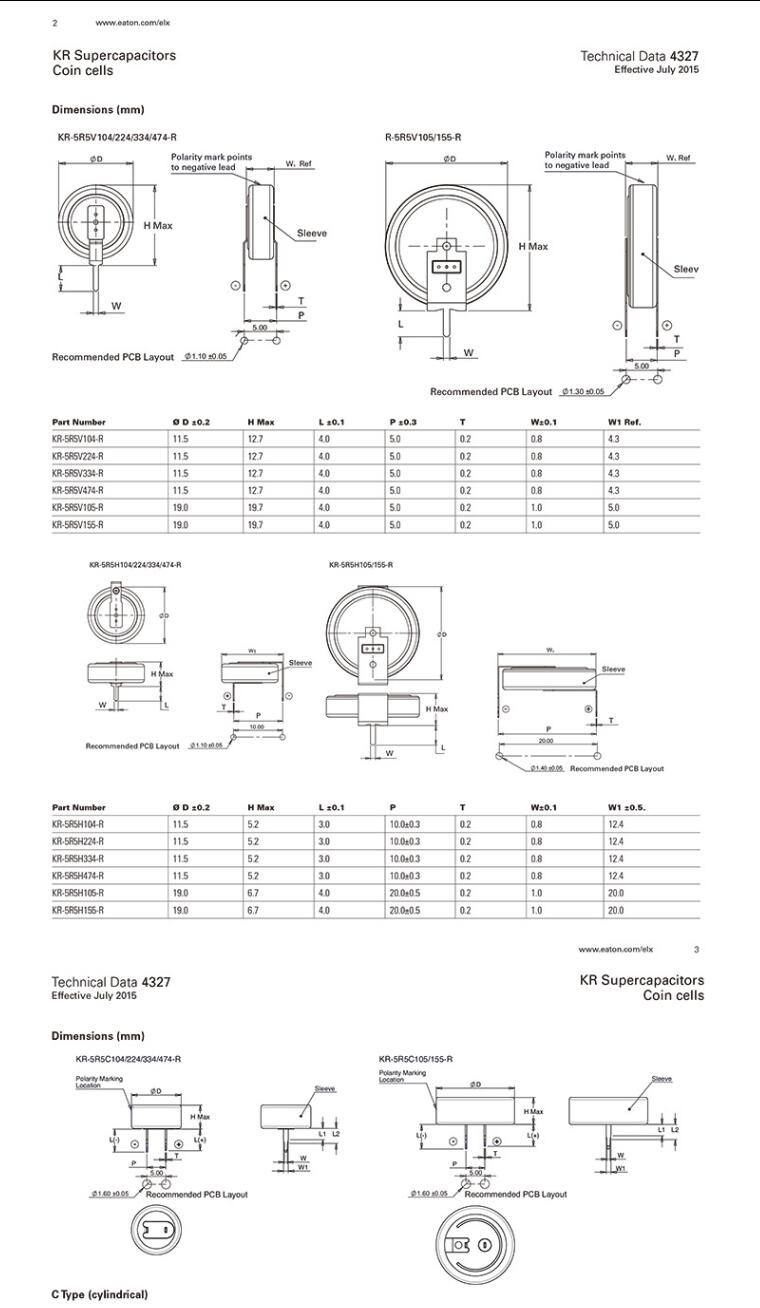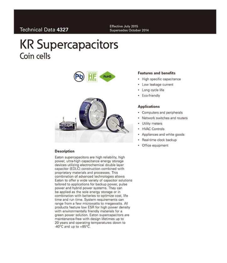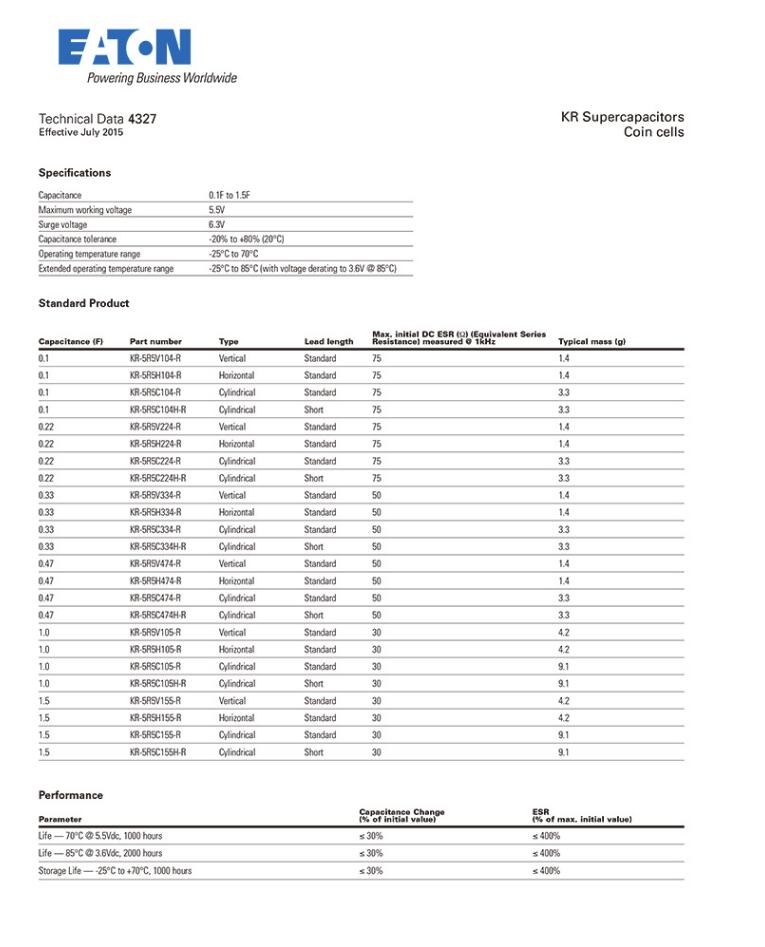 產品名稱: Bussmann KR-5R5V H C 104 224 334 471 105 155 超級電容