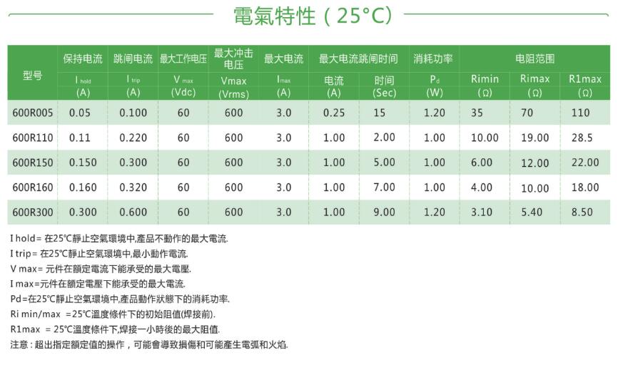 產(chǎn)品名稱: 600V自恢復(fù)保險絲