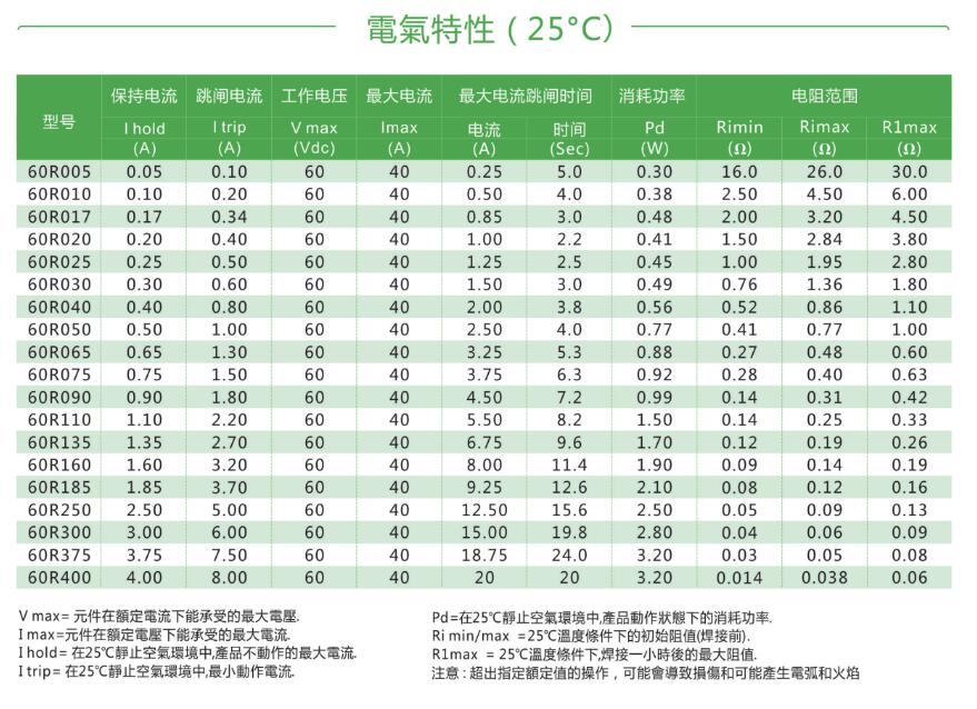 簡述: 60V自恢復(fù)保險(xiǎn)絲