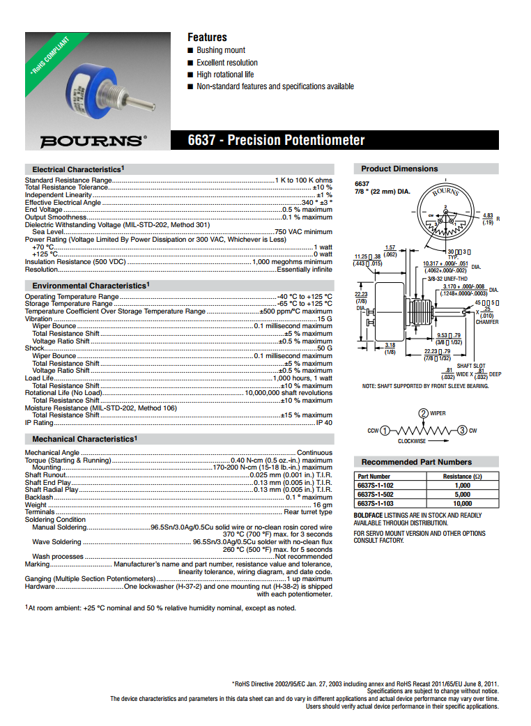 產(chǎn)品名稱: BOURNS單轉(zhuǎn)型精密電位器6637