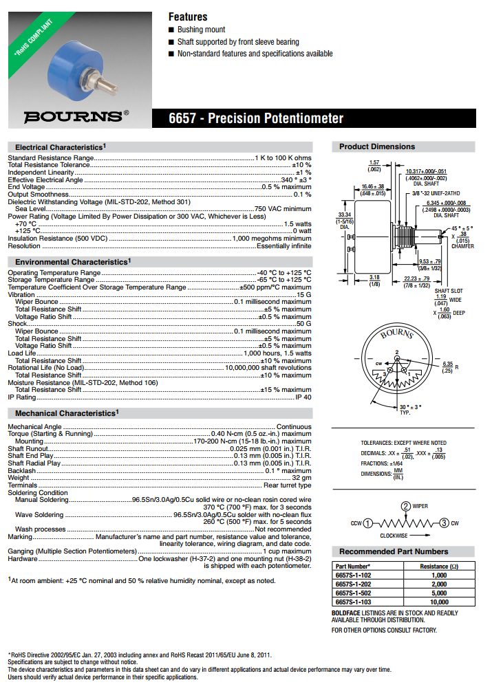 產(chǎn)品名稱: BOURNS單轉(zhuǎn)型精密電位器6657