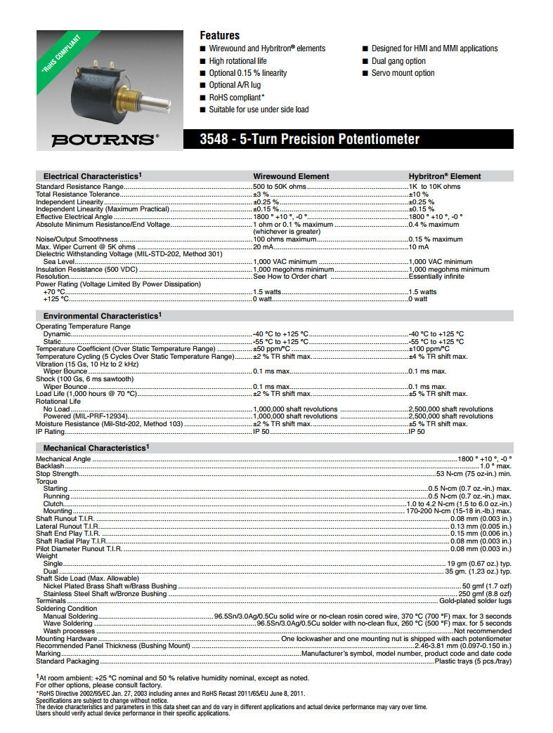 產(chǎn)品名稱: BOURNS多轉(zhuǎn)型精密電位器3548