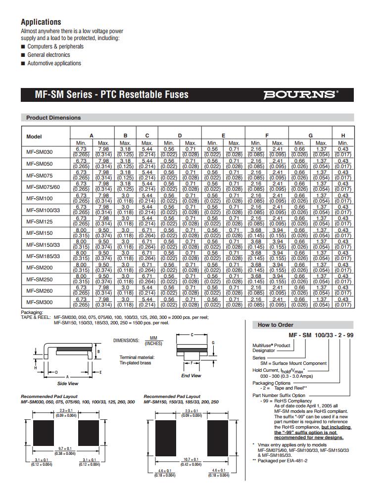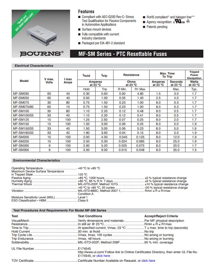 產品名稱: BOURNS 車規(guī)保險絲 MF-SM AEC-Q200認證 車規(guī)認證保險絲 車規(guī)級保險絲