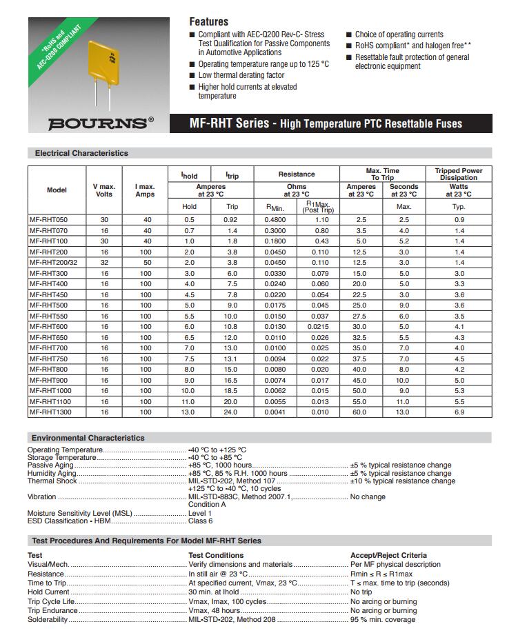 產(chǎn)品名稱: BOURNS 車規(guī)保險絲 MF-RHT AEC-Q200認證