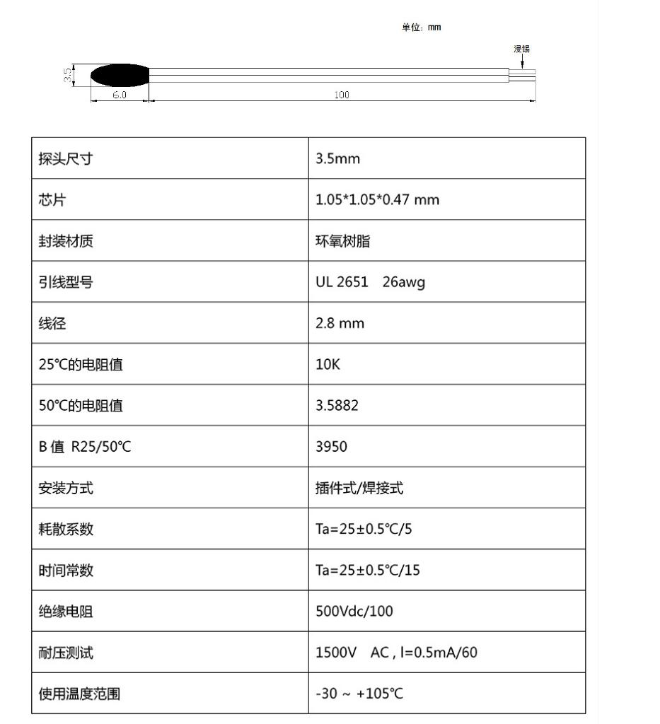 產(chǎn)品名稱: ntc熱敏電阻 CWF52小皮線 鋰電池保護板常用電阻保護