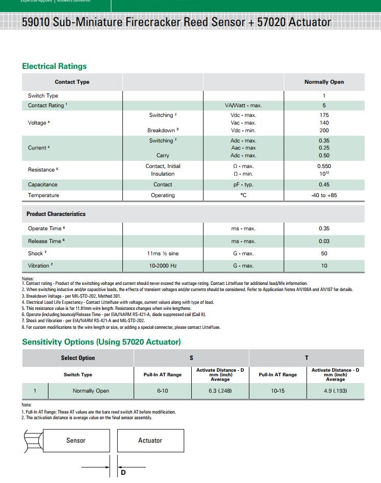 簡(jiǎn)述: 59010 系列 - 超小型Firecracker磁簧傳感器