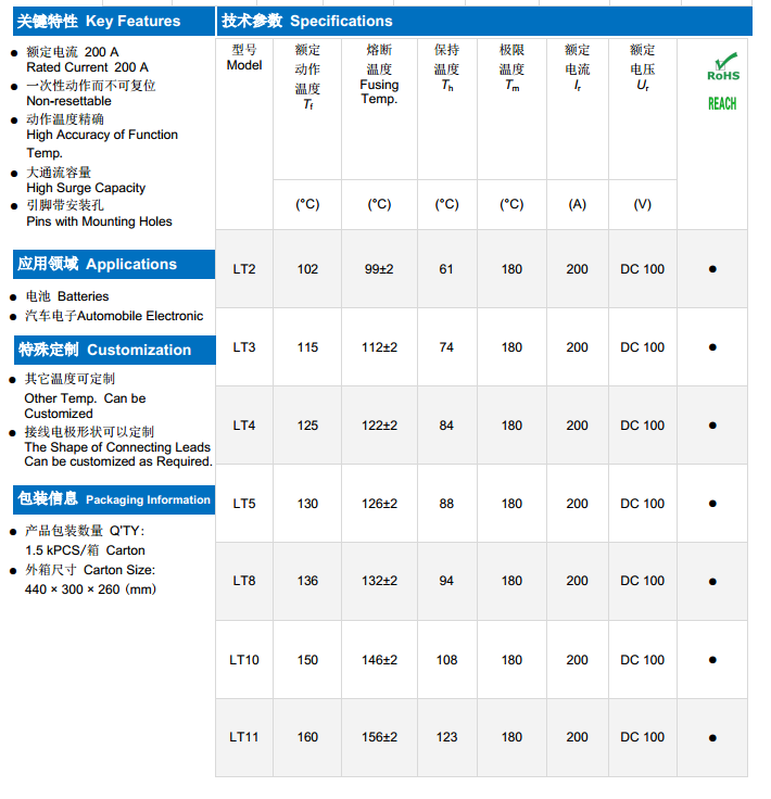產(chǎn)品名稱: 200A100V 溫度保險(xiǎn)絲