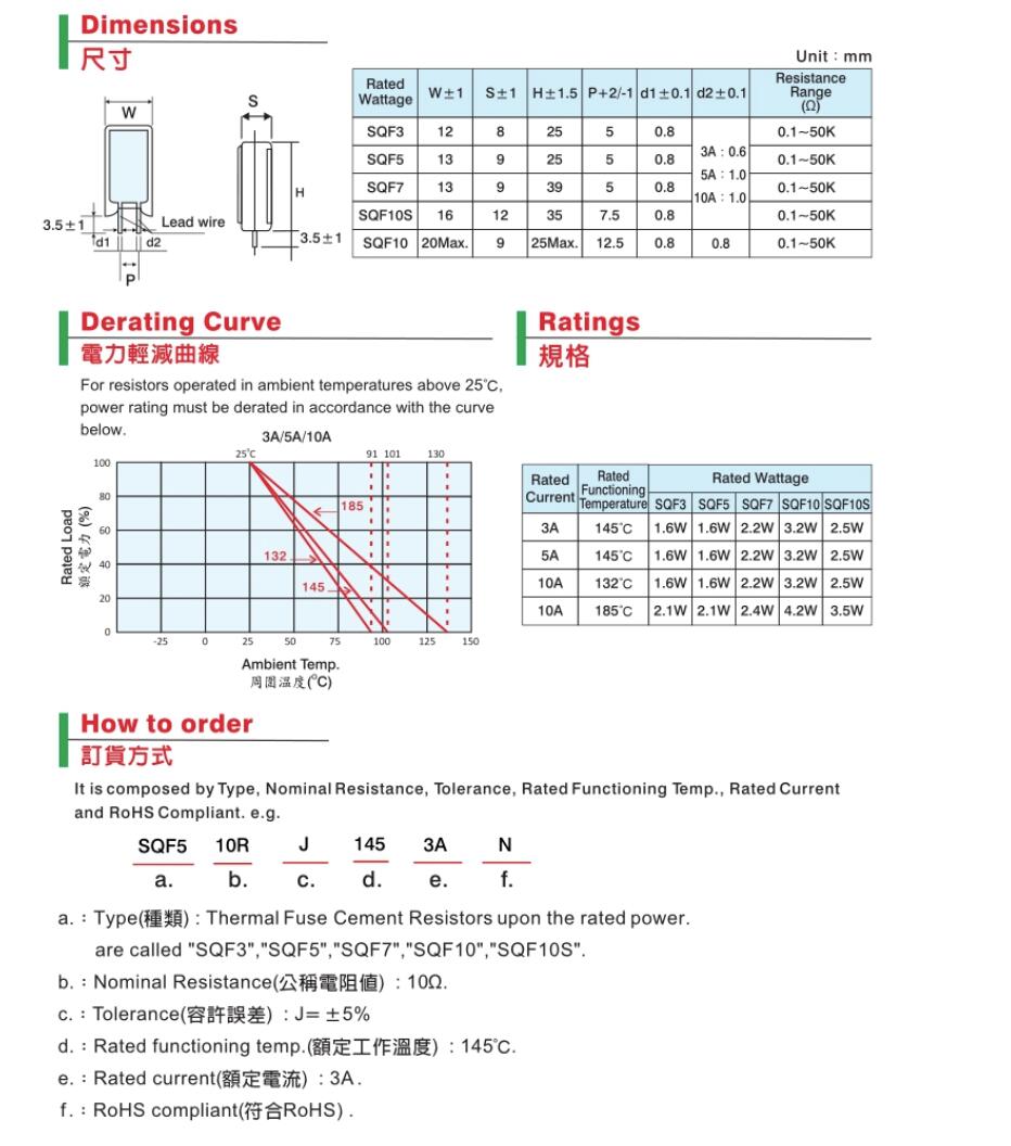 產(chǎn)品名稱: SQF 溫度保險(xiǎn)絲水泥電阻器