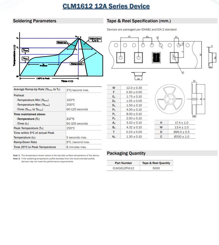產(chǎn)品名稱: CLM1612 12A Series Device 三端保險絲