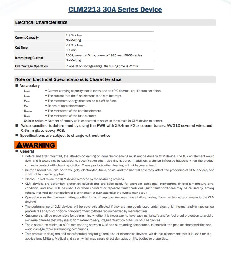 產(chǎn)品名稱: CLM2213 30A Series Device 三端保險絲