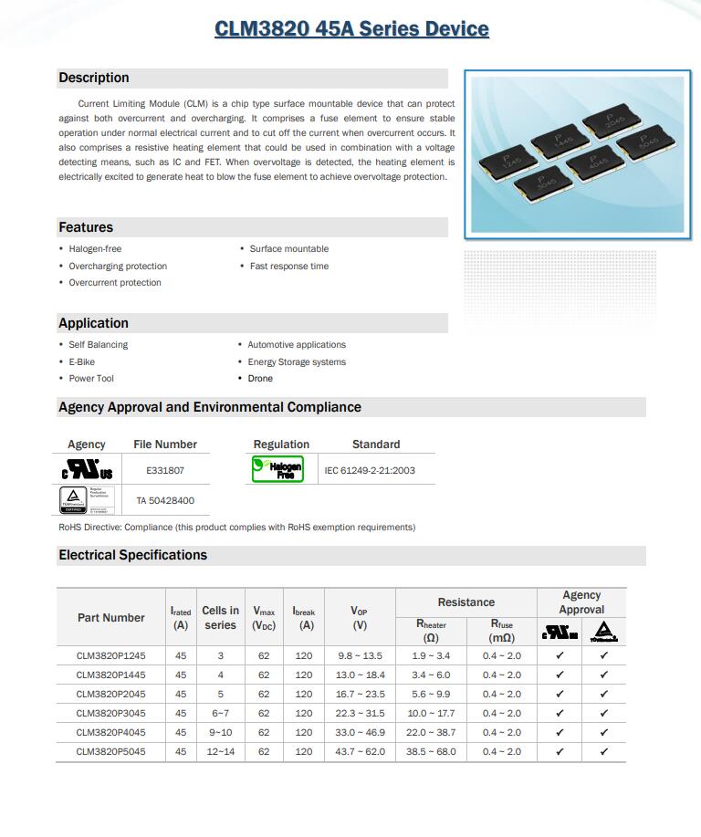 產(chǎn)品名稱: CLM3820 45A Series Device 三端保險絲