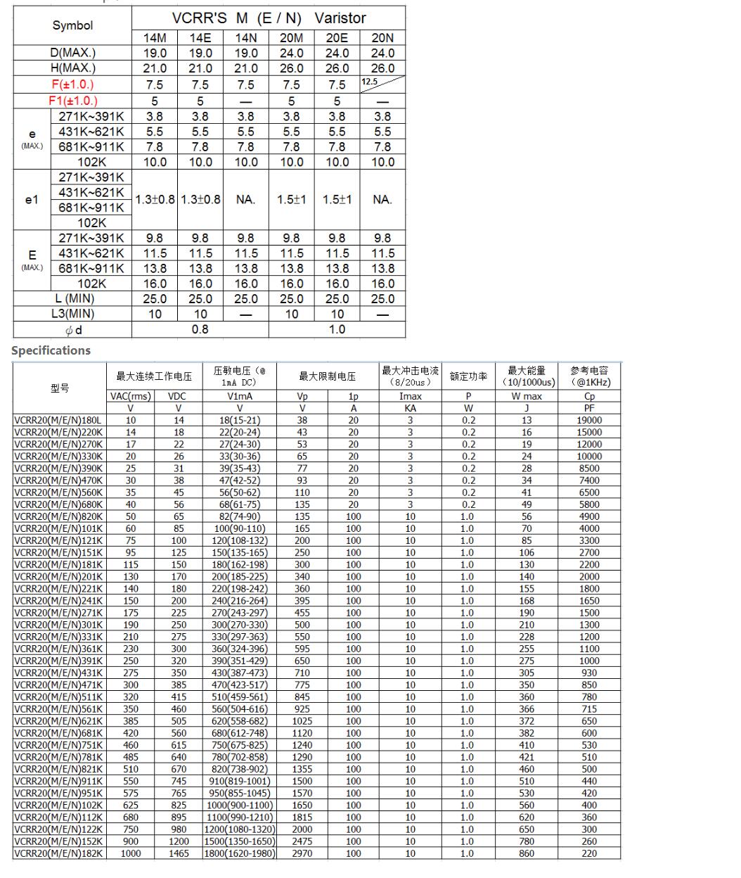 TMOV20D系列?壓敏電壓從(18V-1800V) ?具有UL ,TUV認(rèn)證,符合RoHS,Reach標(biāo)準(zhǔn),無鉛 ?專利的集成熱保護(hù)裝置 - ?旨在促進(jìn)符合UL1449第3版SPD產(chǎn)品 ?和促進(jìn)符合IEC62368 ,IEC61643-331產(chǎn)品 ?高峰值浪涌電流額定值高達(dá)10kA ?波可焊 ?標(biāo)準(zhǔn)引線形式和間距選項(xiàng) ?低泄漏 ?-55°C至+ 85°C的工作溫度范圍