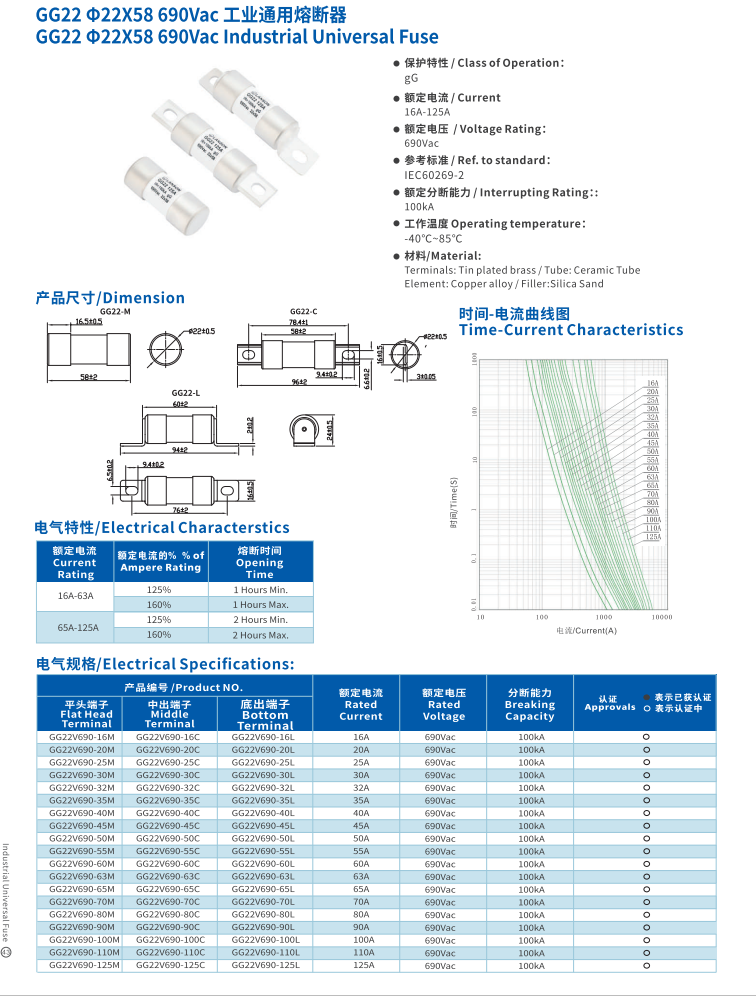 簡(jiǎn)述: 工業(yè)通用熔斷器CG22 22*58 690VAC INDUSTRIAL Universal Fuse